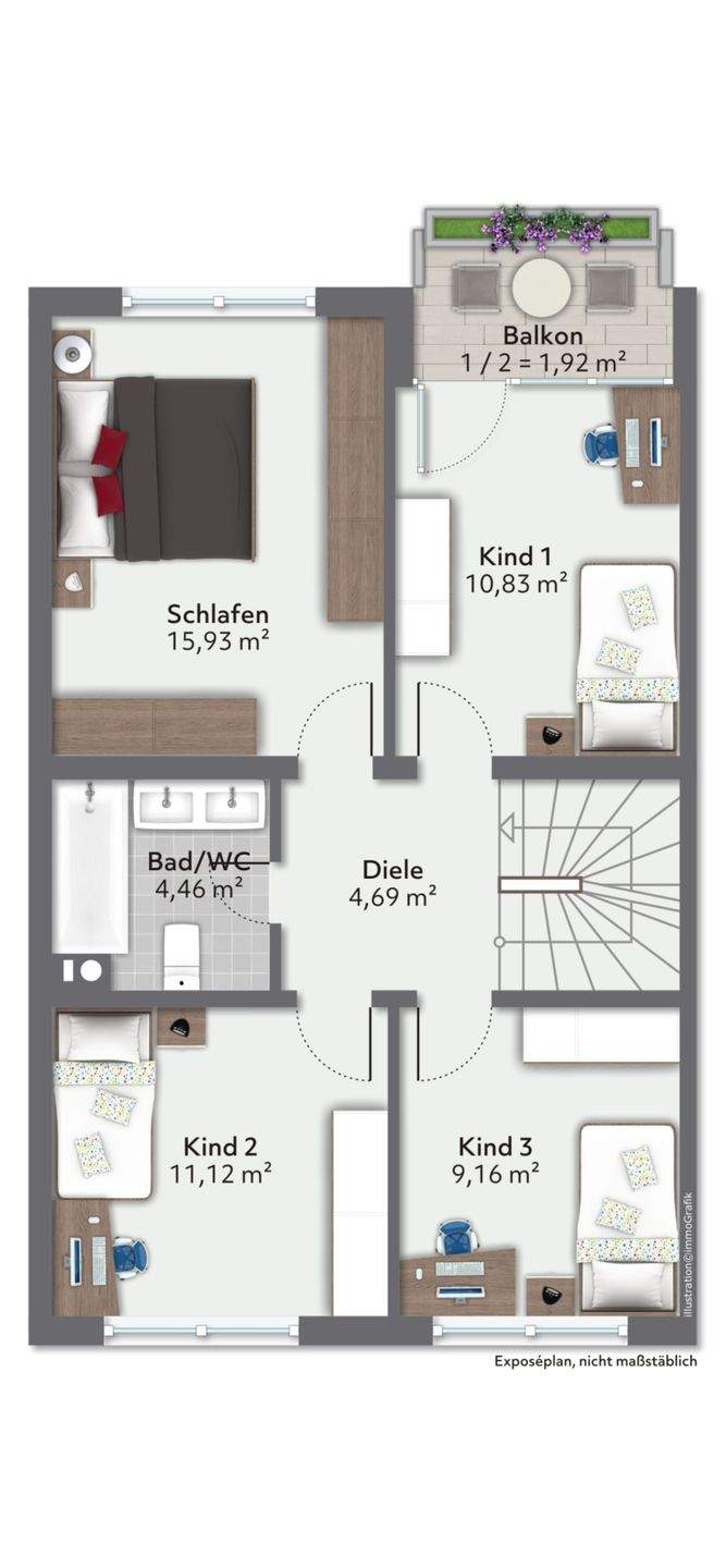 • Kinderzimmer 3 im Obergeschoss -