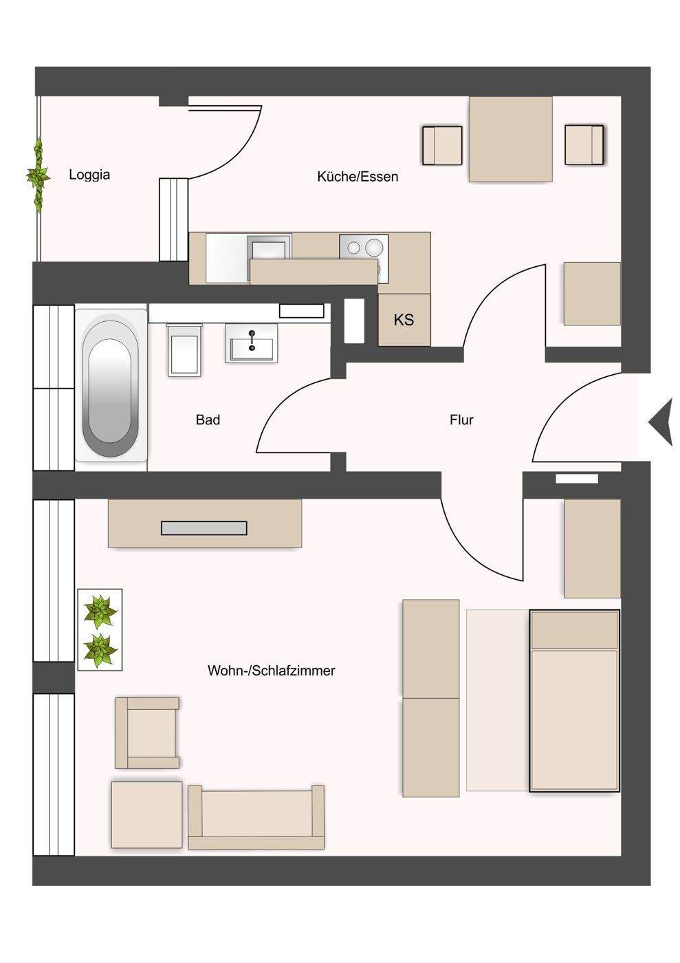 • 1-Zi-Appartment: kleine, aber feine Loggia -
