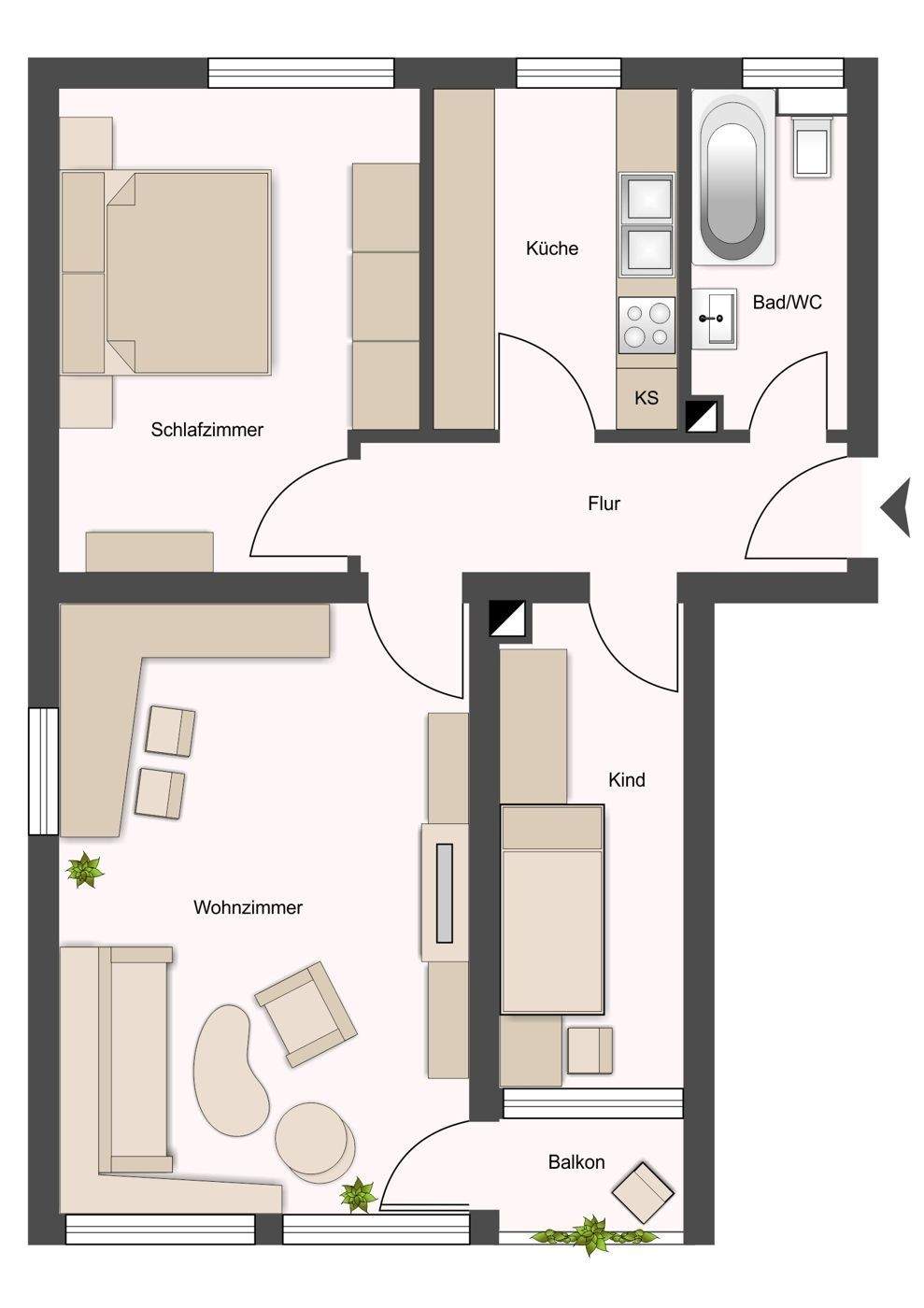 • 2-Zi-Wohnung: Windfang -