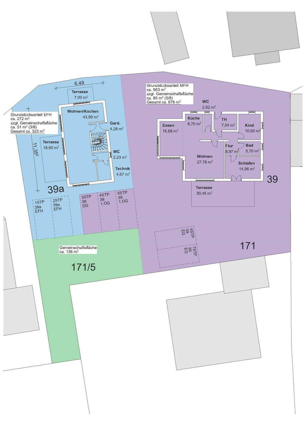 Aufteilungsplan, blaue Fläche betrifft das Baugrundstück -