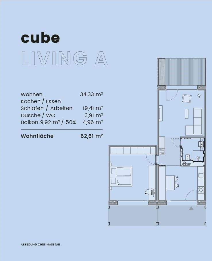 Zimmeranzahl :2 Gesamtgröße :ca. 62,00 m² Wohnfläche :ca. 62,60 m² Baujahr :2024 Balkon :