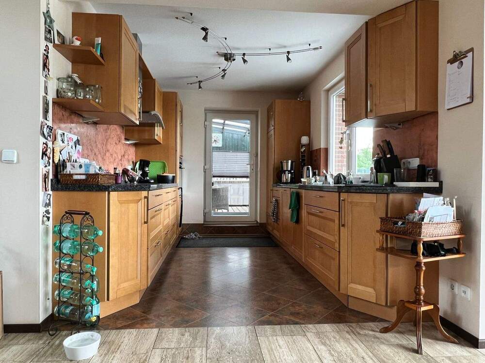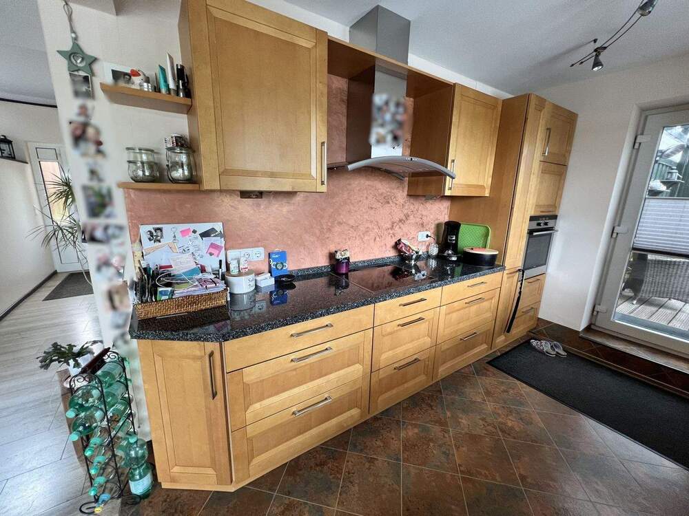 • Offene Küche mit Holzmöbeln -