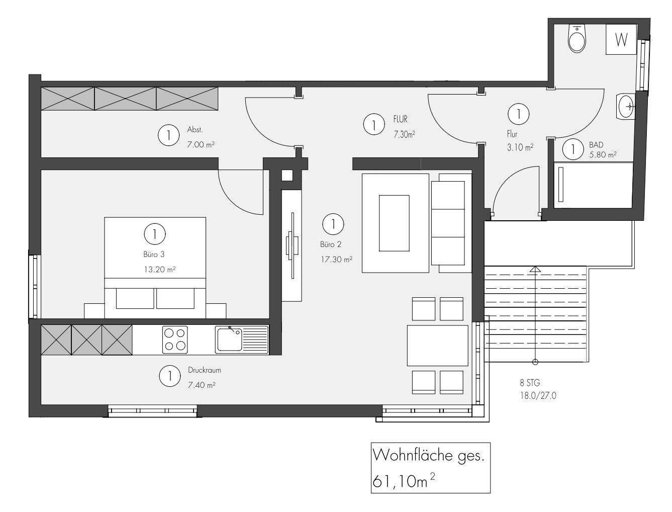 Wohnfläche:ca. 61,00 m²
