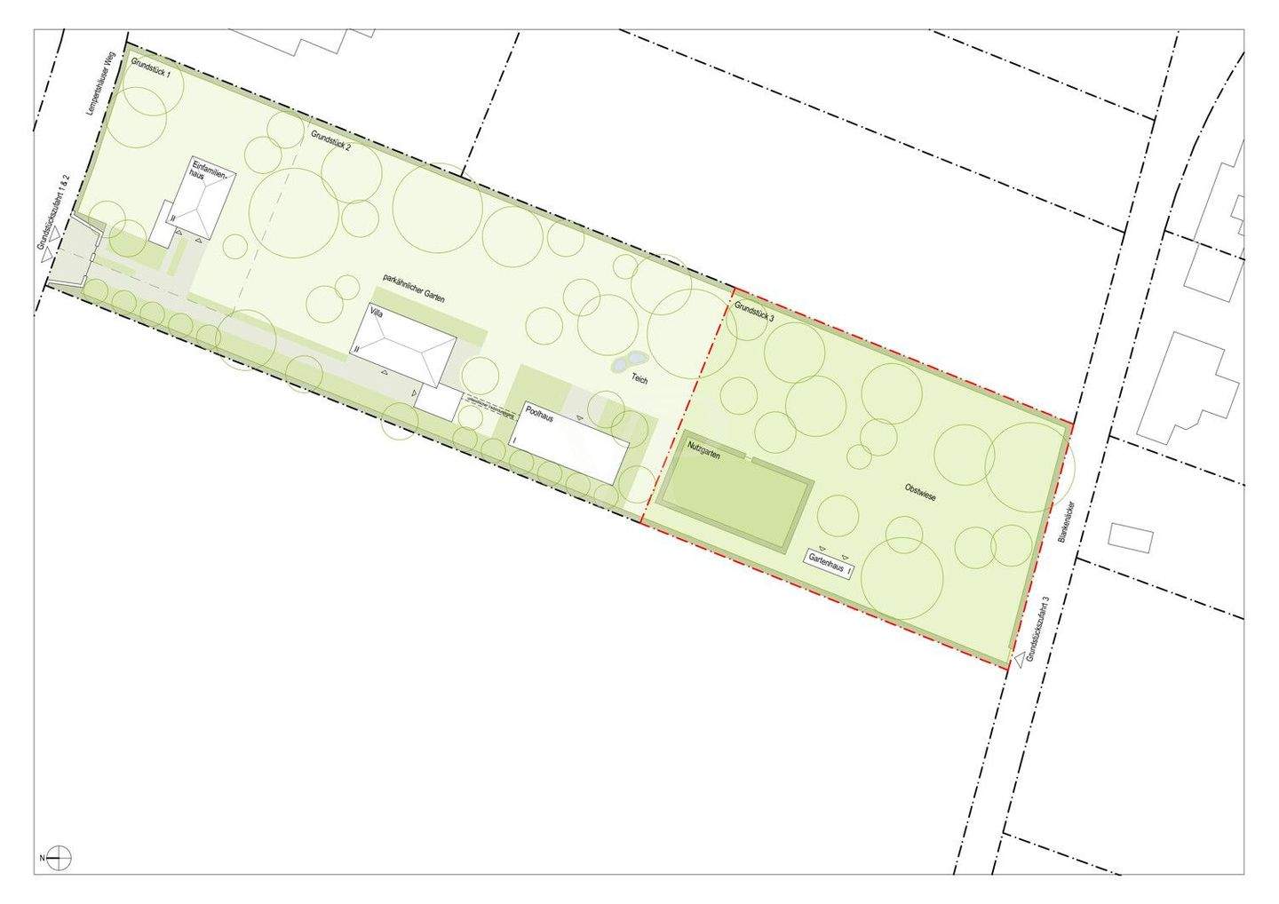 • Lageplan gesamtes Anwesen mit Markierung des Grundstücks -