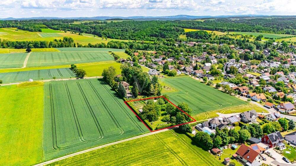 • Luftansicht mit Markierung des Grundstücks - Grundstück in Bad Rodach / Heldritt