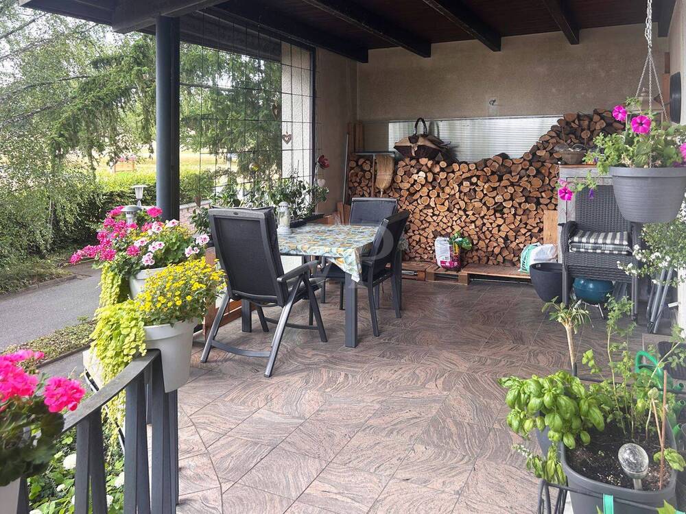 • Blick in den Garten von Balkon/überdachter Terrasse - OG -