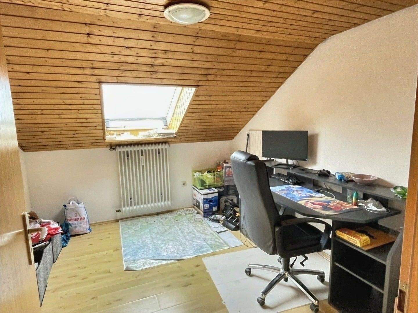 • Eines von zwei Zimmern im Dachgeschoss -