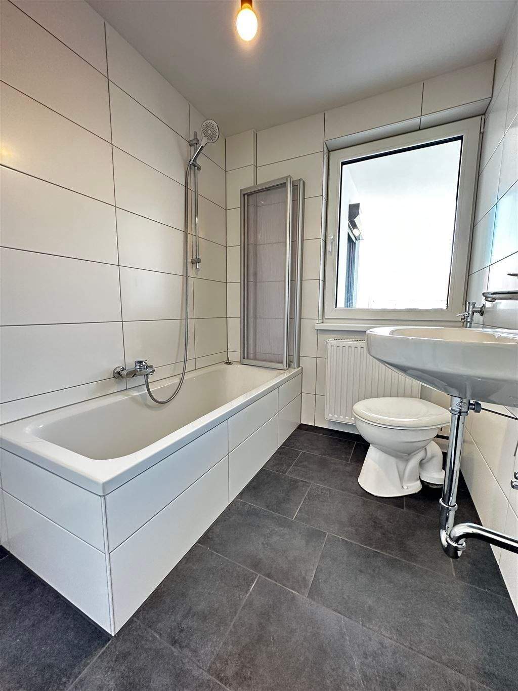 • Bad mit Wanne, WC, Waschbecken und Fenster -