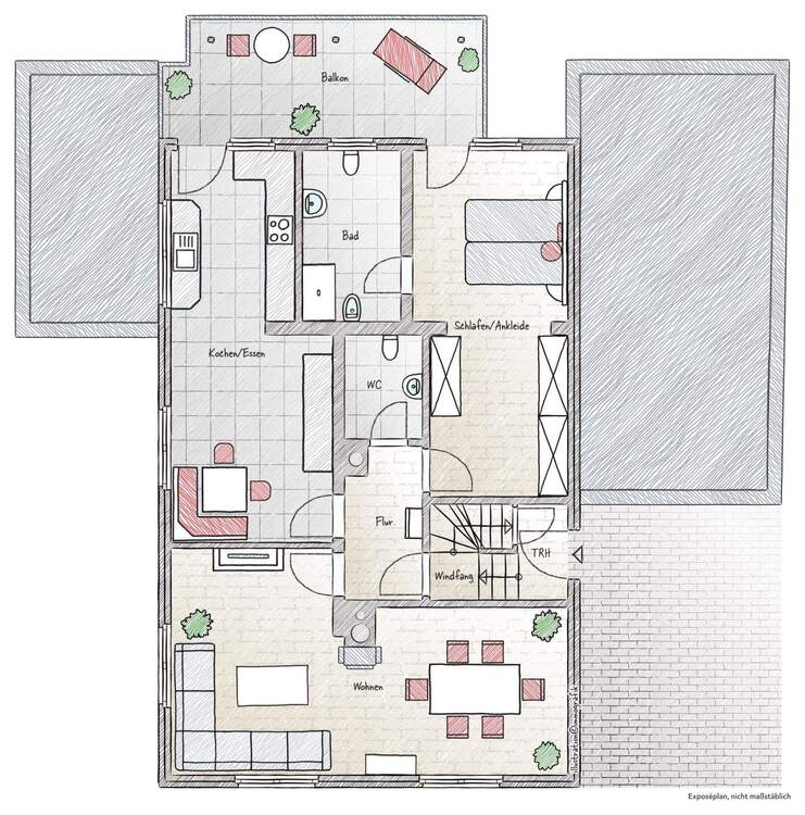 Großzügige 2-Zimmer-ETW (Umgestaltung zu 3-Zimmer-ETW möglich) inkl. Balkon und großem Grundstück