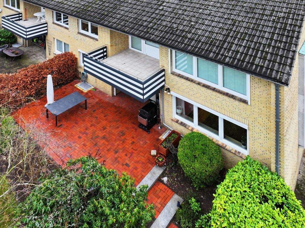 • Luftaufnahme Wohnhaus Terrasse - 5 Zimmer Etagenwohnung in Hamburg / Volksdorf
