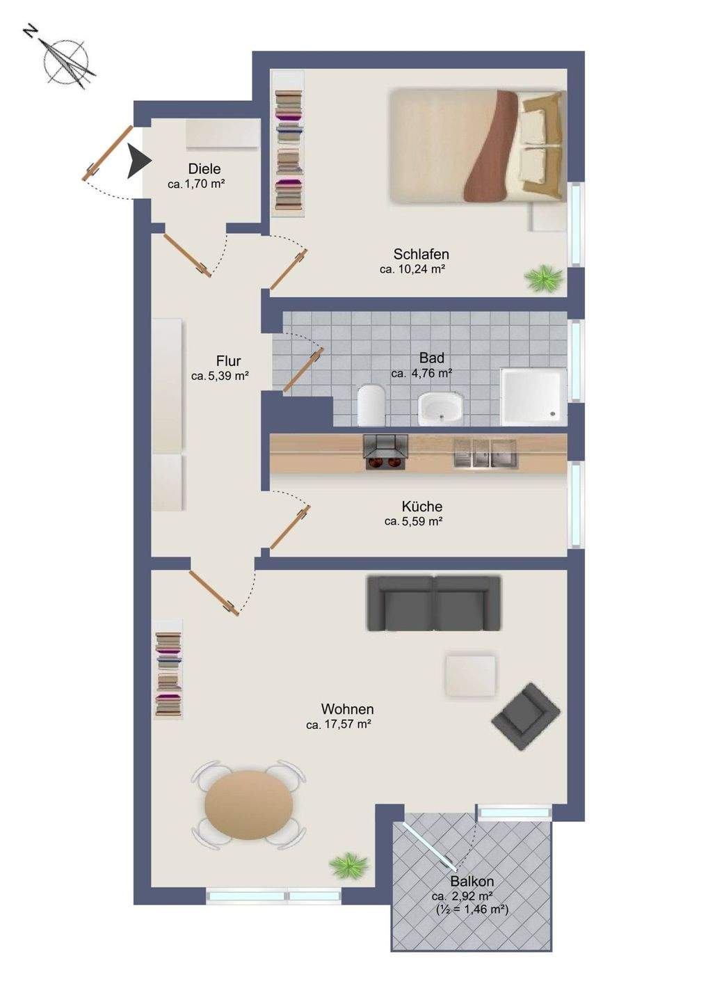 Wohnfläche:ca. 46,70 m²