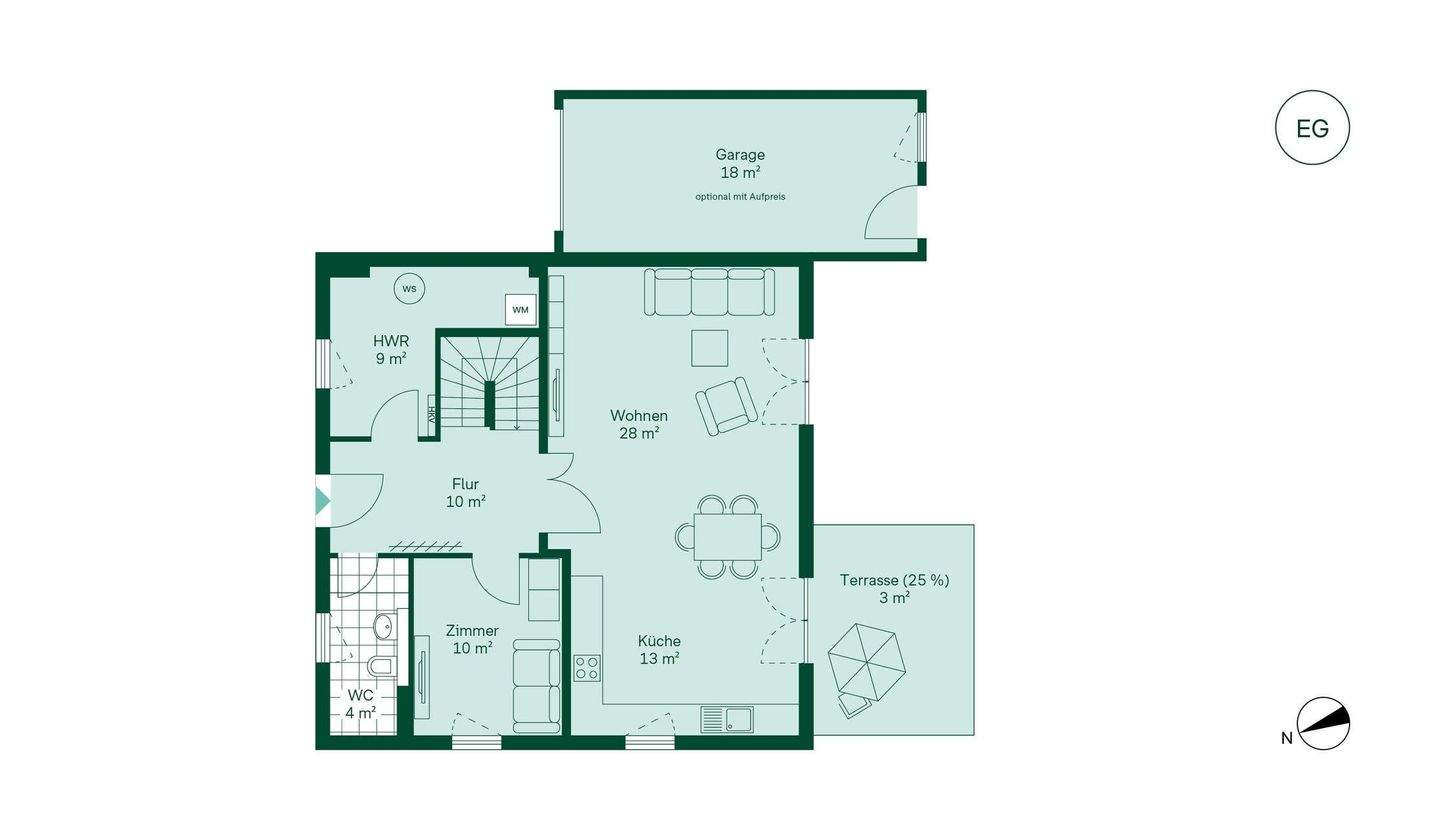 • Komfortabler Grundriss mit einem großzügigem und offenem Wohnbereich -
