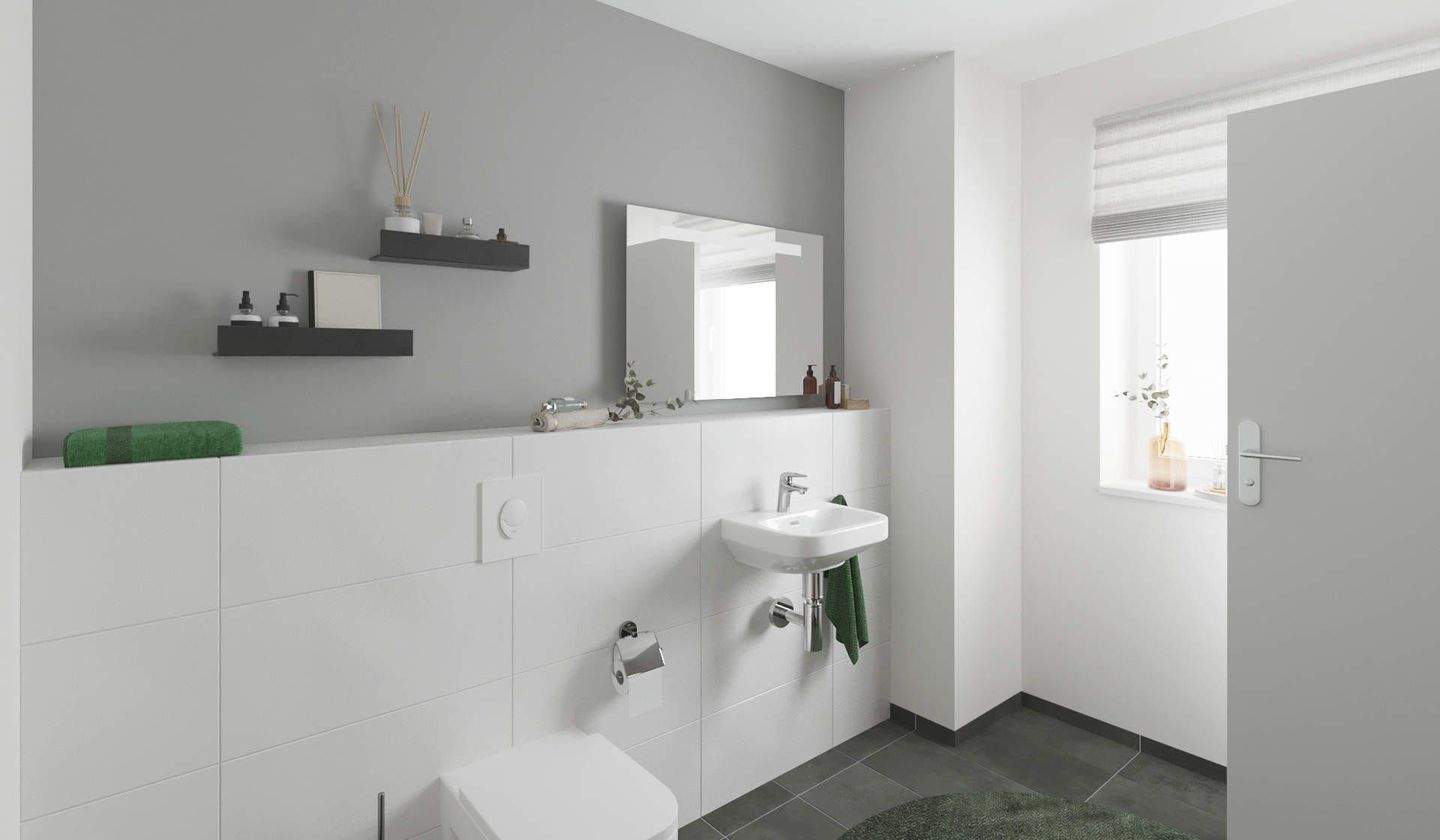 • Modern gefliestes Gäste-WC im Erdgeschoss - Reihenmittelhaus mit 156,80 m² in Langen zum Kaufen