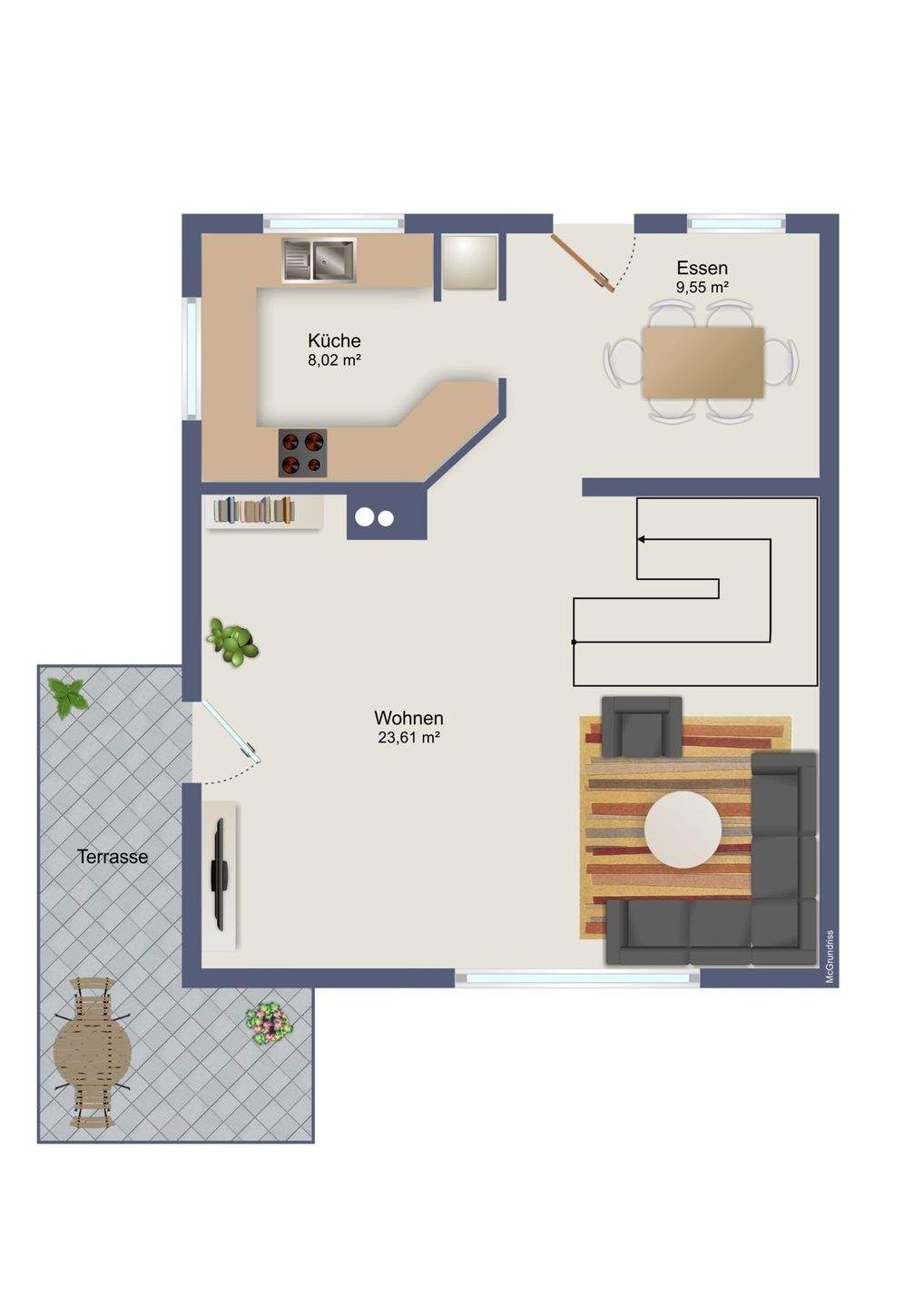 • Küche mit Essbereich -