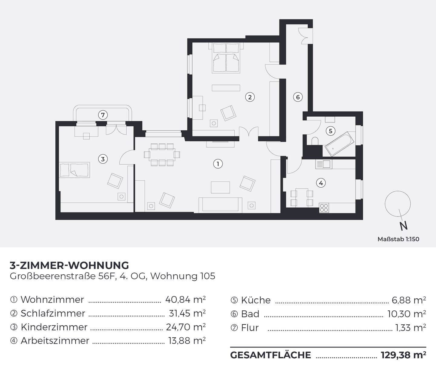 Gesamtgröße:ca. 129,00 m²