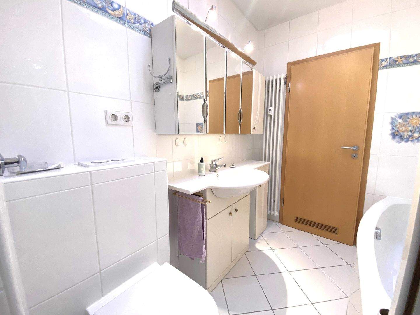 • Bad m Tür und Waschbecken -