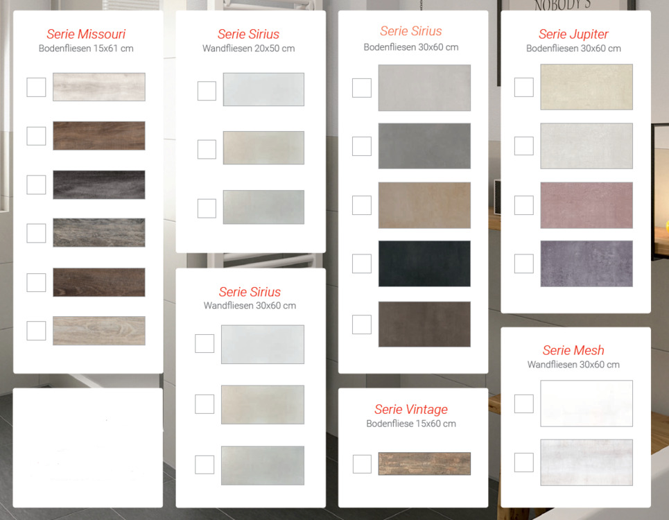 • Fliesenauswahl Beispiele -