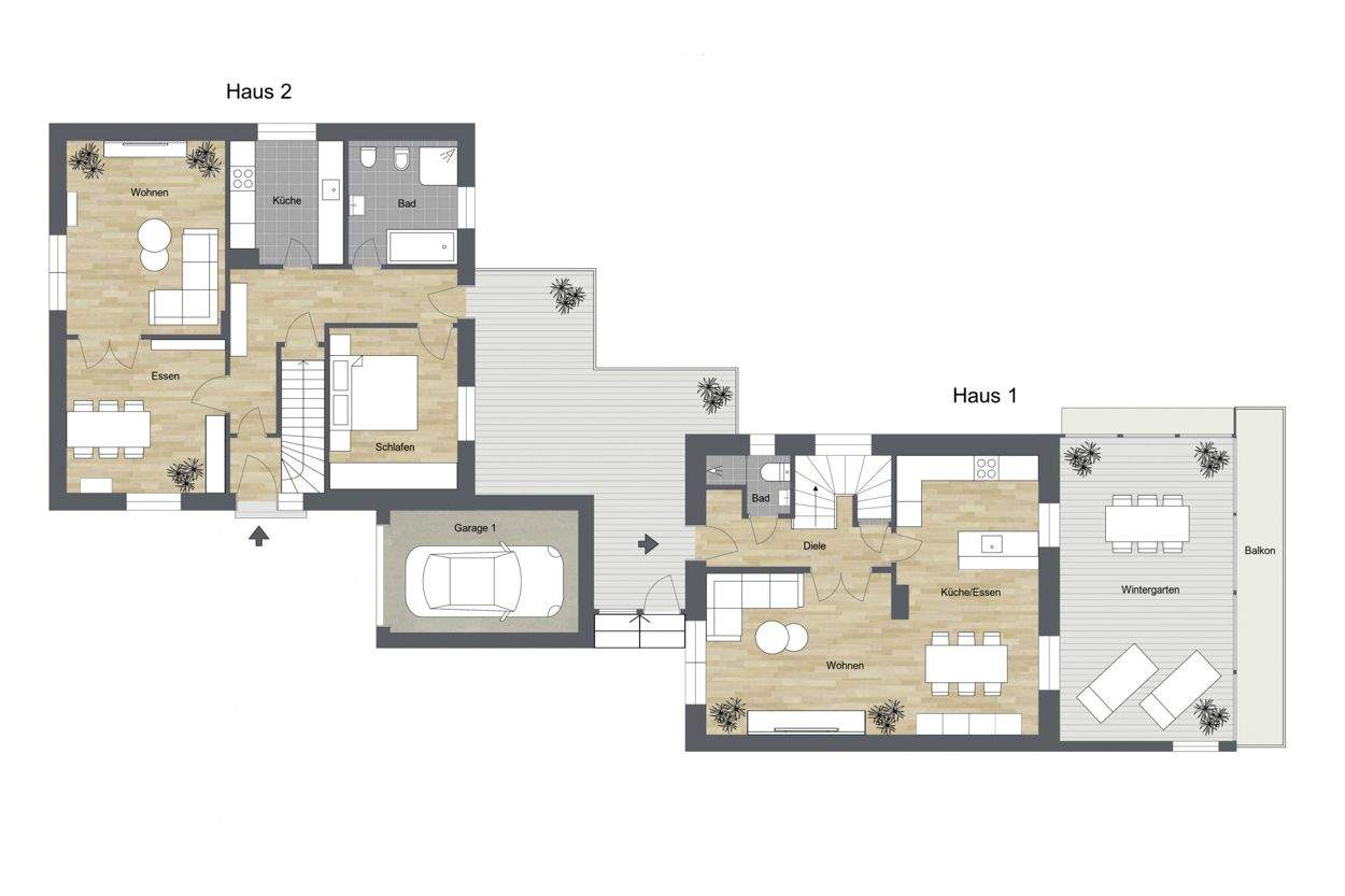 Sie befinden sich hier: Jöllenbeck: 2 bereits in Wohnungseigentum aufgeteilte Einfamilienhäuser mit 4 Garagen & 6 Stellplätzen in Bielefeld Jöllenbeck - 25F9VV5BCKUA | 1A-Immobilienmarkt.de