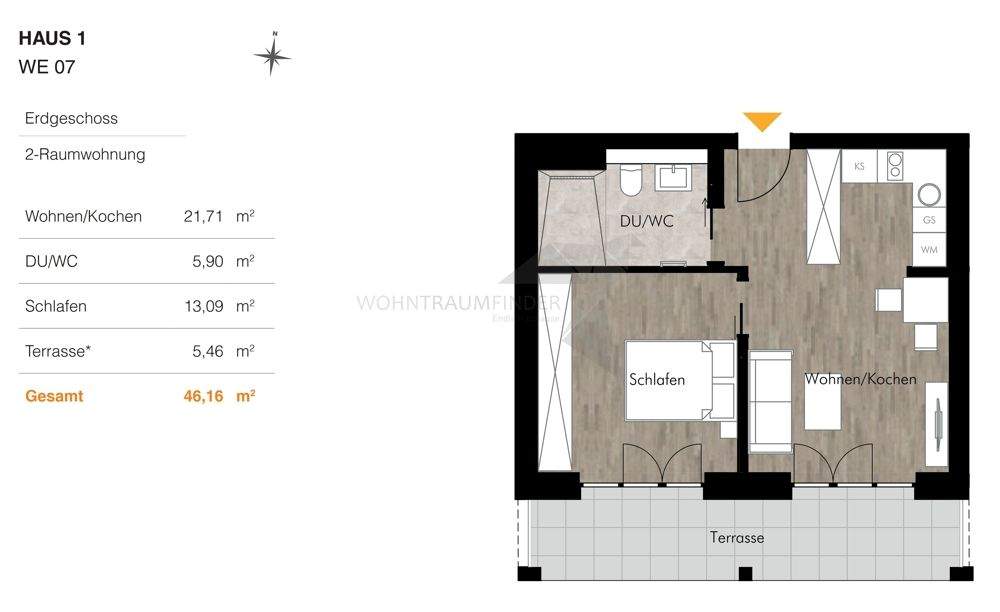 | Wohnfläche: | ca. 46,20 m² |