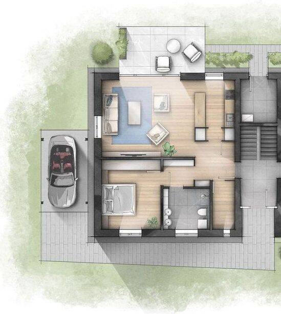 • Seitenansicht - Helle Zwei-Zimmer-Neubauwohnung mit Terrasse