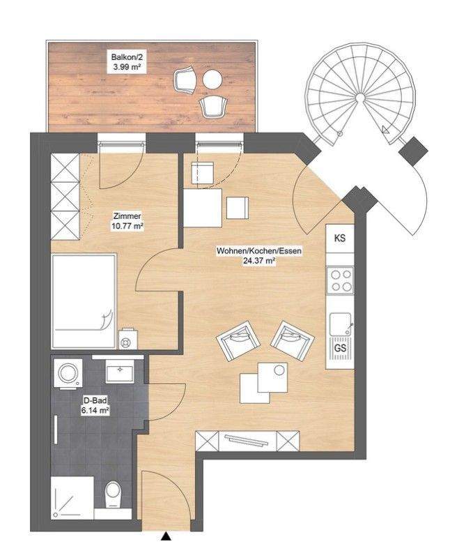 Ref. Visualisierung Wohnen/ Kochen/ Essen - Etagenwohnung mit 45,30 m² in Leipzig zum Kaufen