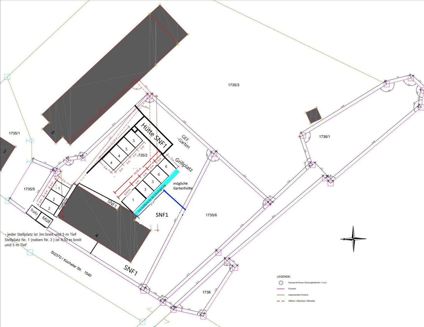 • Plan neu Aussenstellplätze mit SN und GE -
