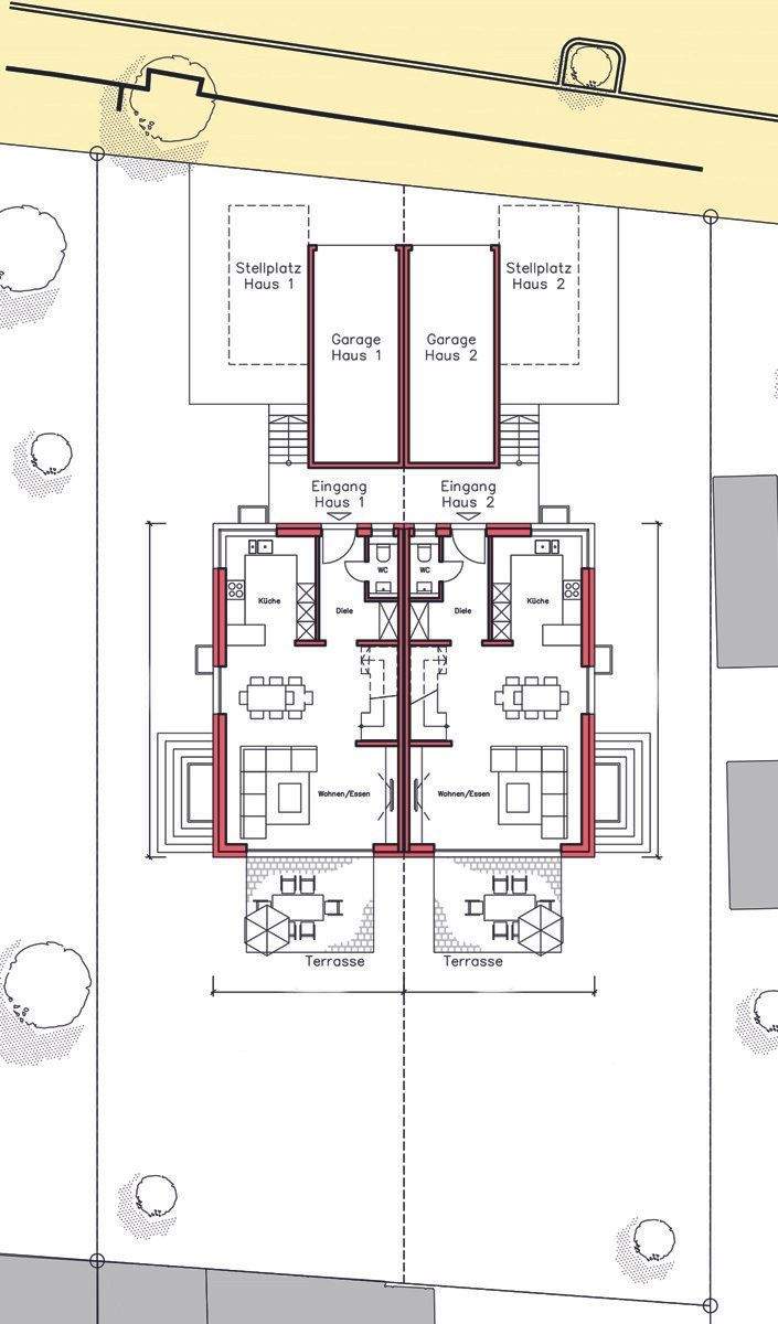• Blick auf den Bauplatz - Offene Bes. am Sa. 21.03 von 11:30-12:30 Uhr: Moderne DHH für die junge Familie in Rutesheim