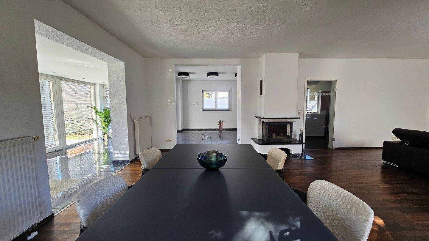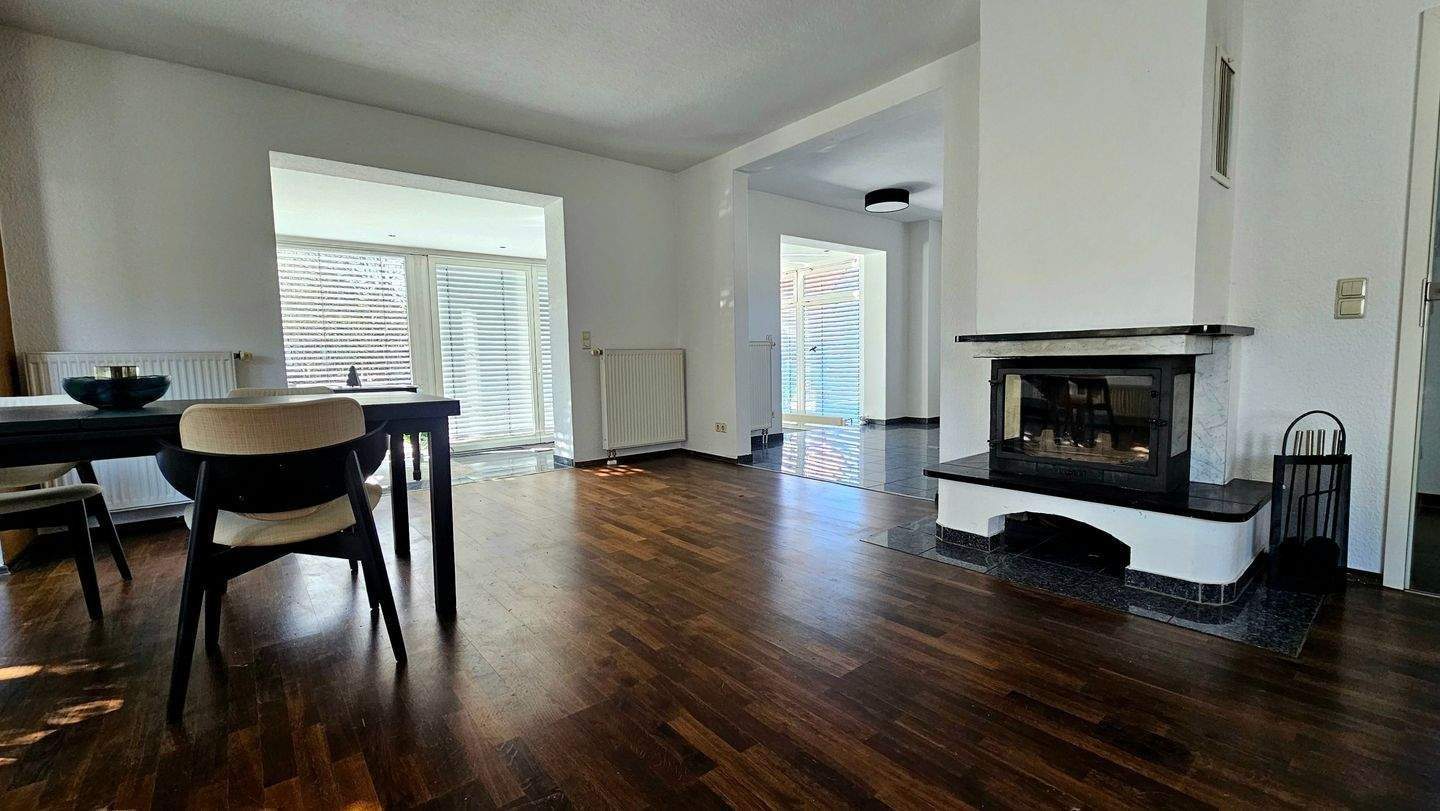 • Blick vom Esstisch zum Kamin -