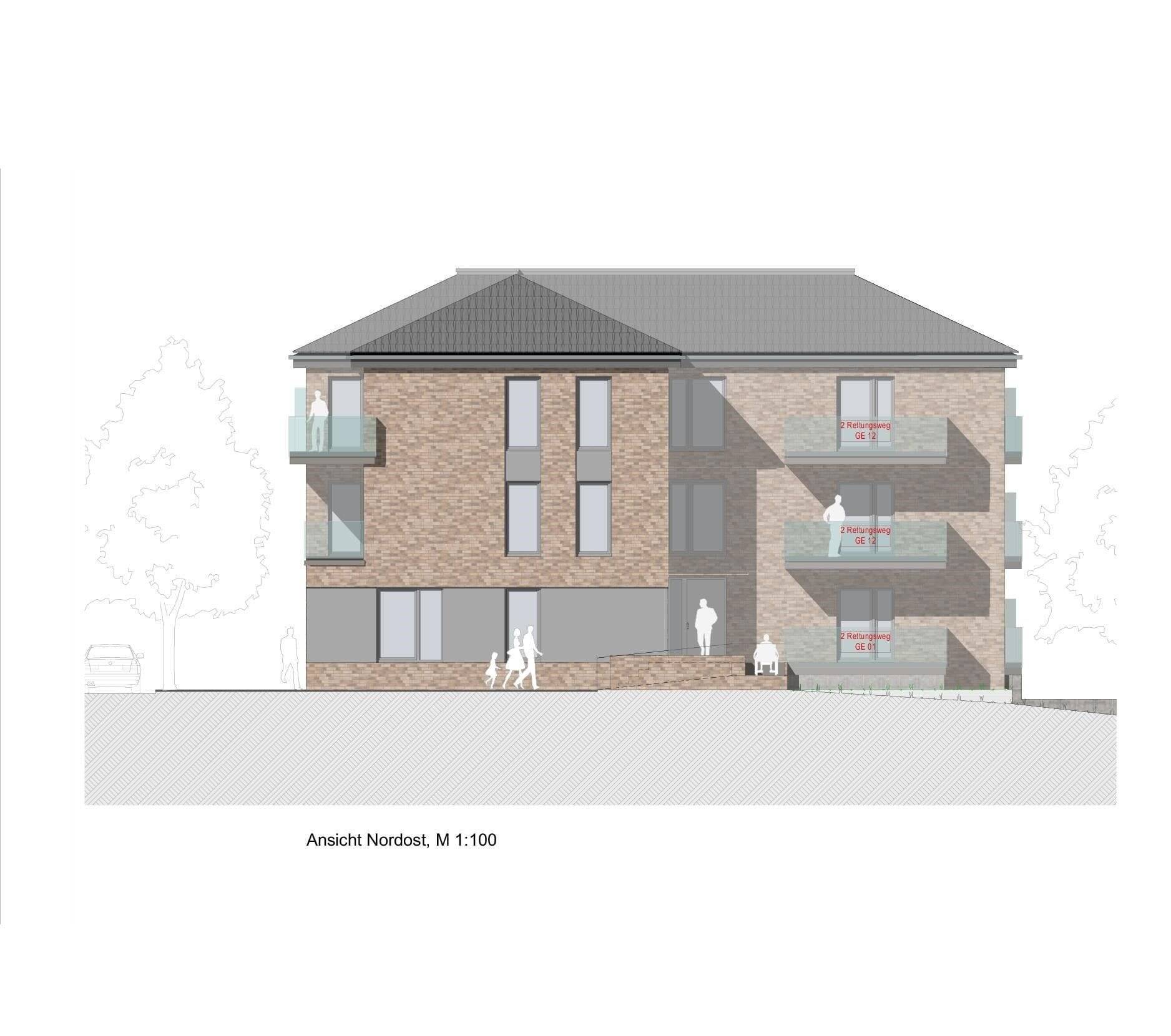 Ansicht Nordost und Schnitt - Etagenwohnung mit 58,80 m² in Schortens zum Kaufen