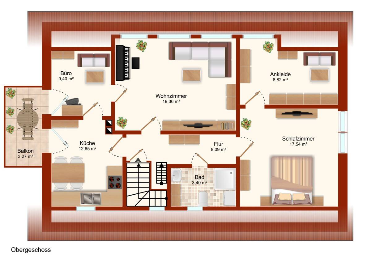 • Große Küche mit Sitzgelegenheit und Zugang zum Balkon OG -