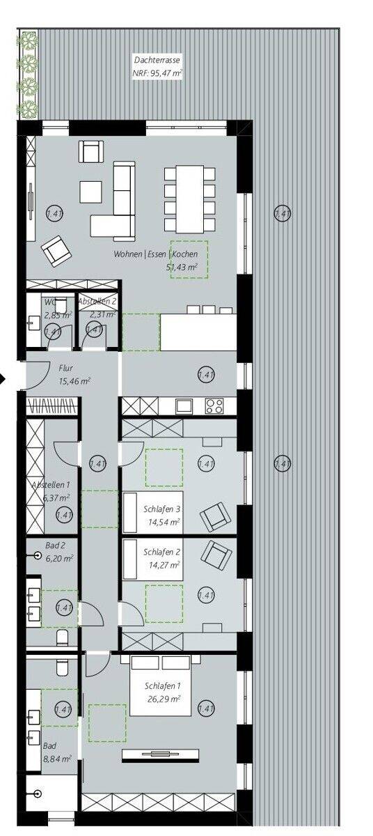 Grundriss Whg. 35 - Kreis 1.41 -