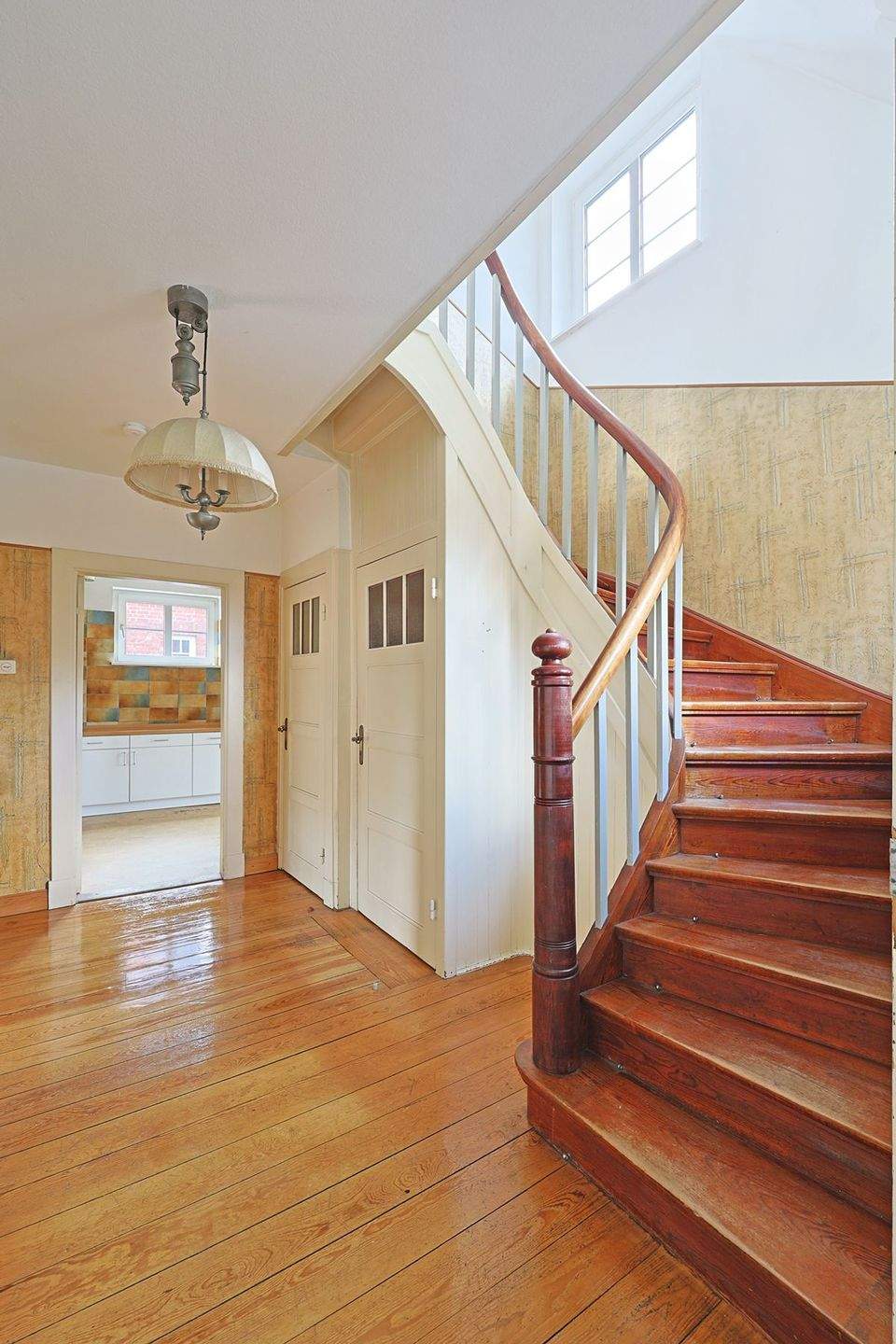 • Wunderschöne Holztreppe mit geschwungenem Handlauf -