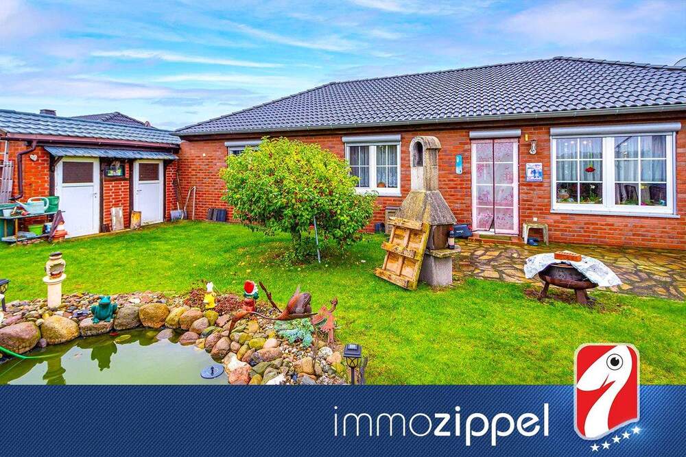 Sie befinden sich hier: Am Feldrand in Podelzig: Klinker-Bungalow Bj.2000, 4 Zi.,G-WC, Masterbad, Kamin, Garage,648 m² Grdst in Podelzig - 255DYUCJEDAT | 1A-Immobilienmarkt.de