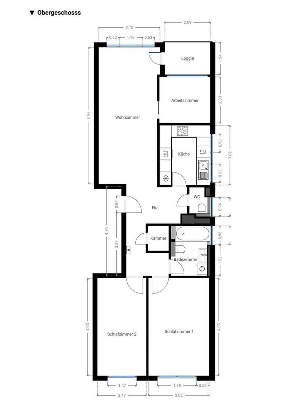 • Grundriss OG Flur / Kammer -