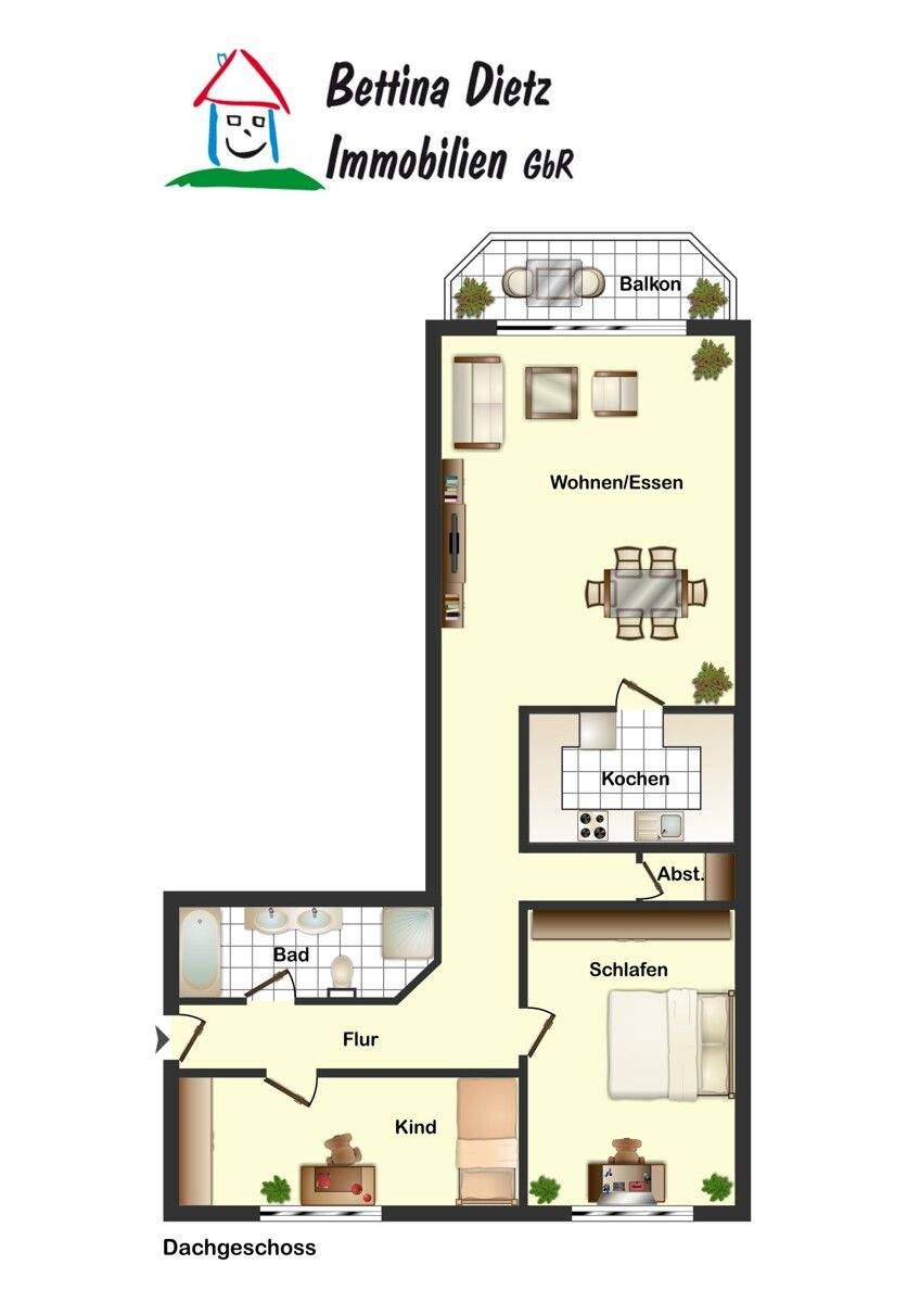 Sie befinden sich hier: DIETZ: Helle freundliche 3-Zimmer Dachgeschosswohnung in Groß-Zimmern mit Garage und sonnigem Balkon in Groß-Zimmern - 25JUC61GXNNS | 1A-Immobilienmarkt.de