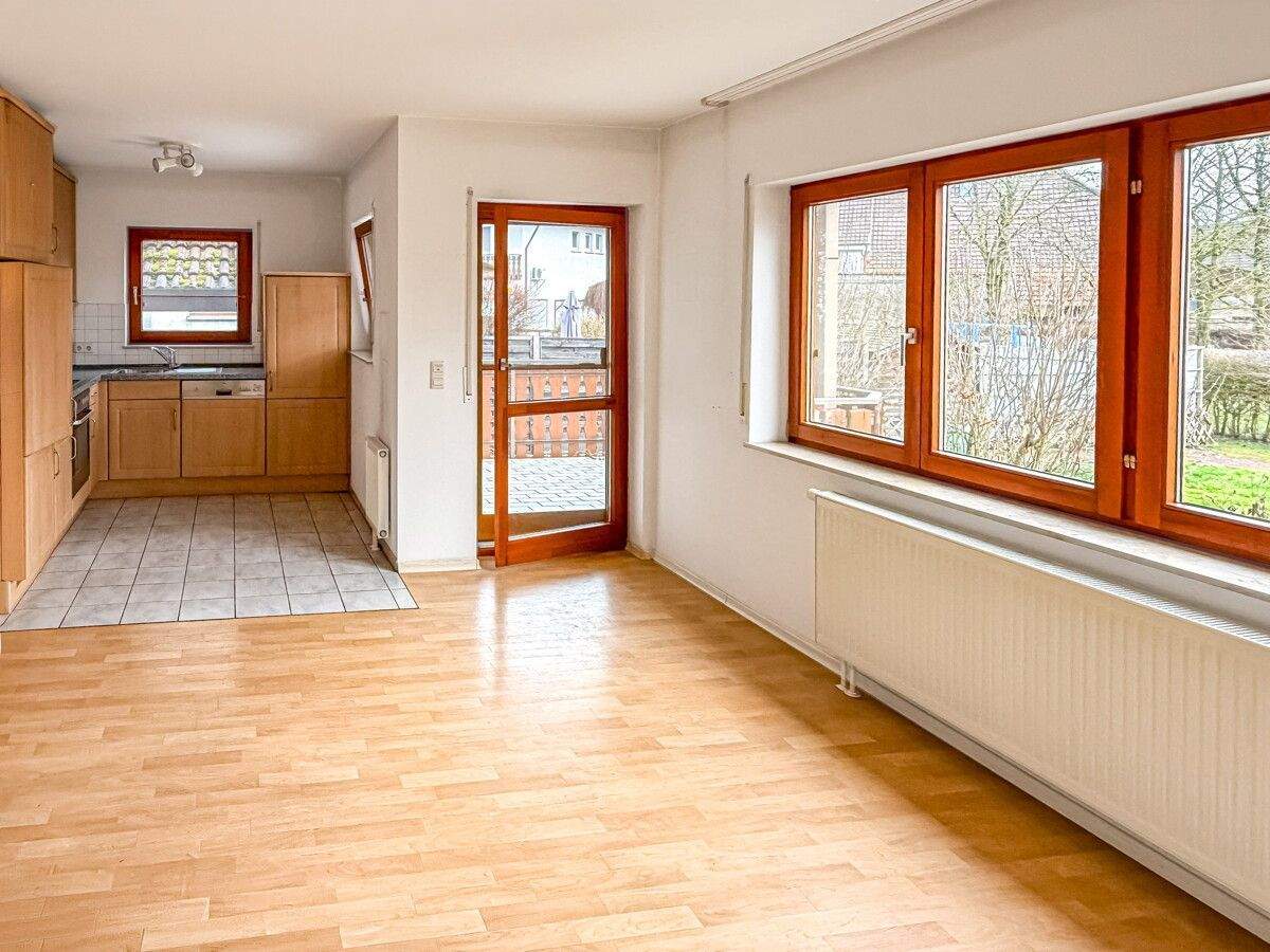 Wohnzimmer mit Ausgang auf die Terrasse - 3 Zimmerwohnung mit Einbauküche und Terrasse in Willstätt