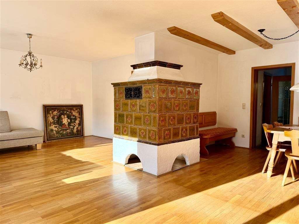 • Das Wohnzimmer mit Ofen - 6 Zimmer Mehrfamilienhaus, Wohnhaus zum Kaufen in Seehausen