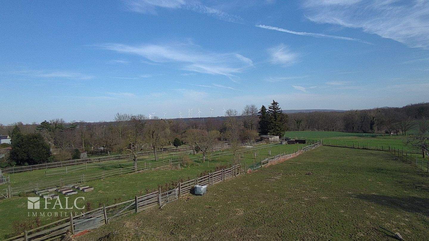 Vierkanthof mit Blick auf Wiesen und Felder