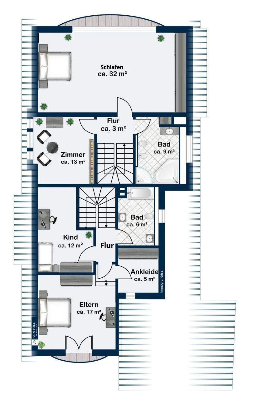 • Beispielmöblierung Schlafzimmer im Vorderhaus -