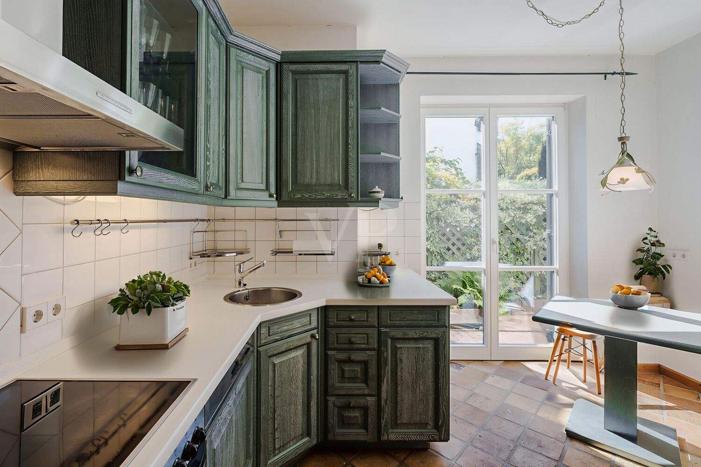 • Küche mit Zugang zum Garten im gartenseitigen Haus -