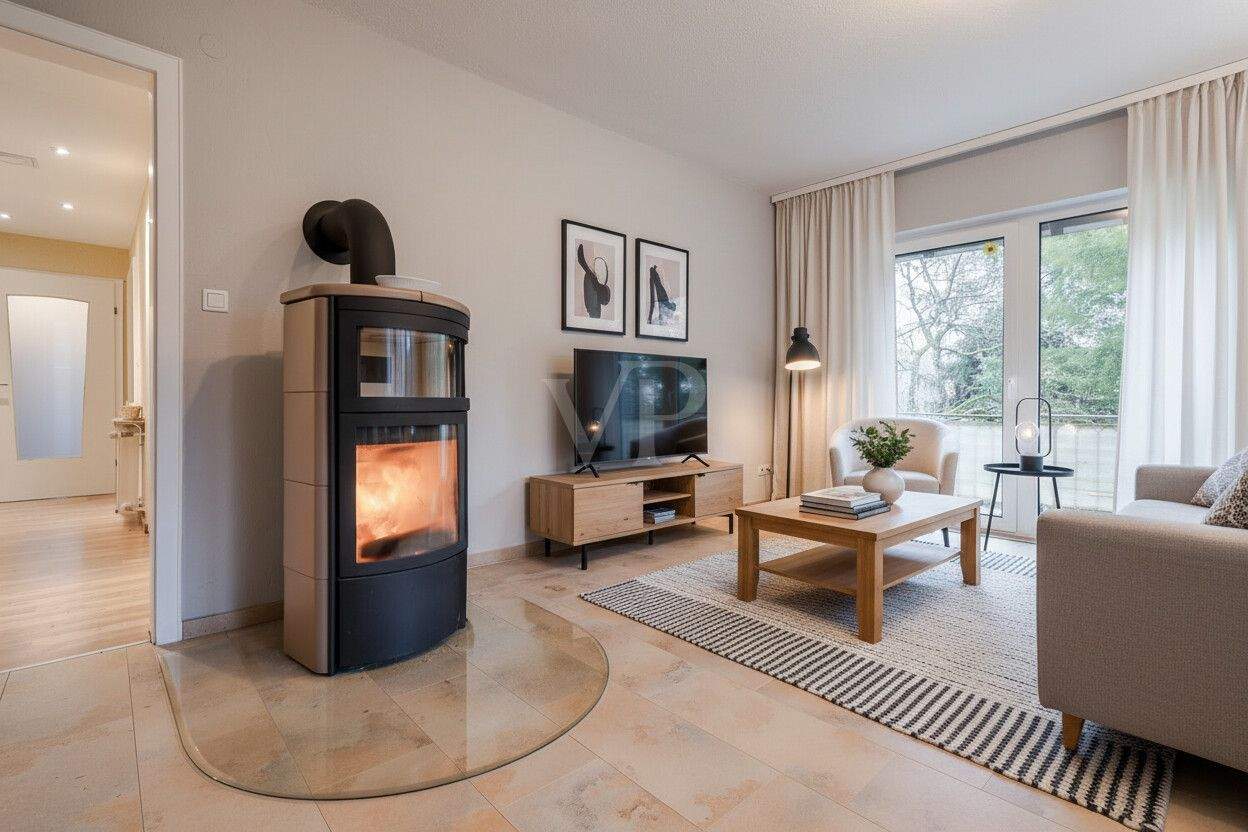 • Wohnzimmer mit Kaminofen für gemütliche Stunden -