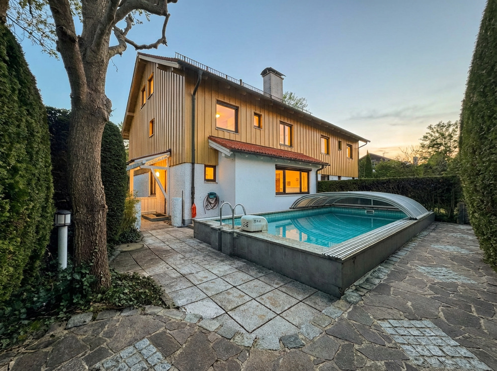 Die Bestlage am Waldrand Grünwald! Großzügige Doppelhaushälfte mit viel Platz und Outdoorpool