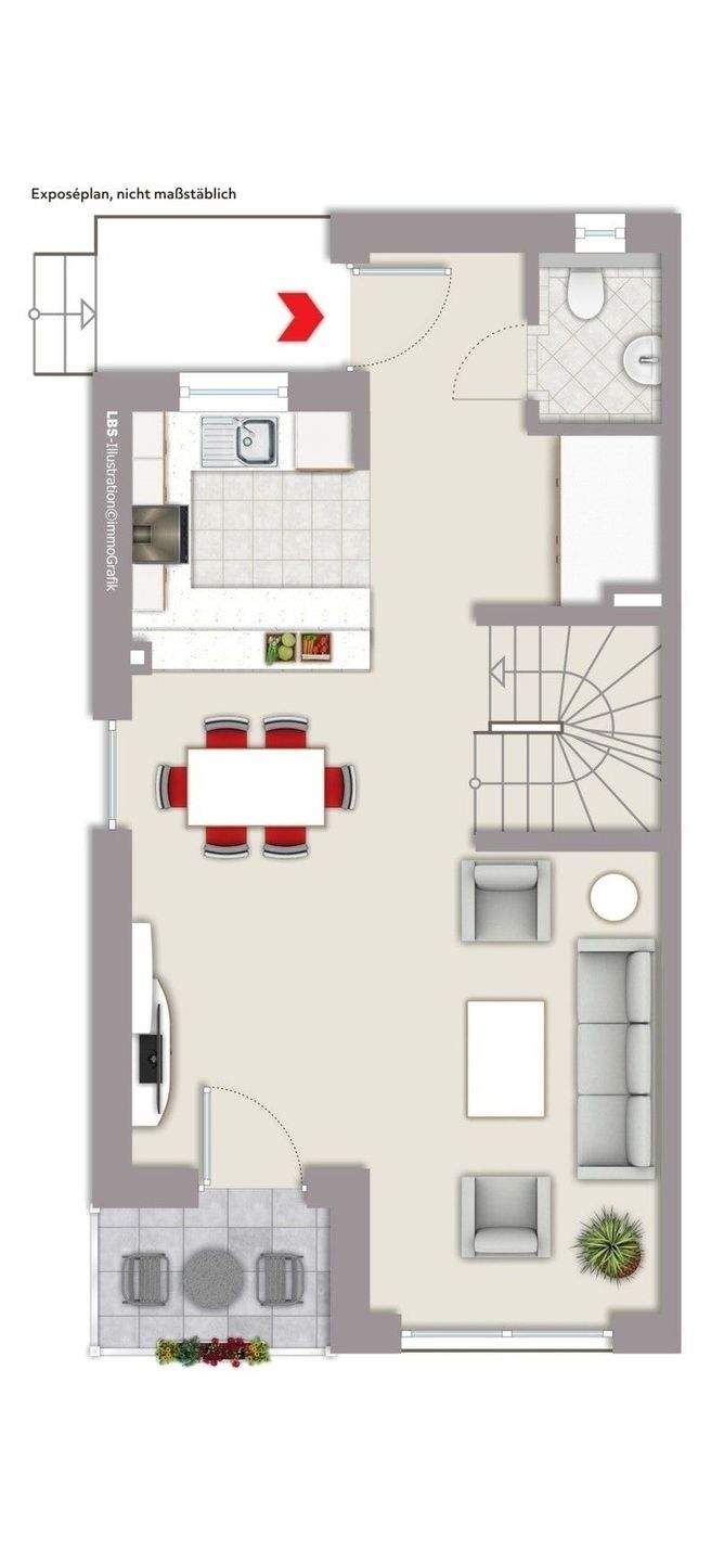 • Erdgeschoss - Einrichtungsbeispiel - 5 Zimmer Reihenendhaus zum Kaufen in Groß-Zimmern
