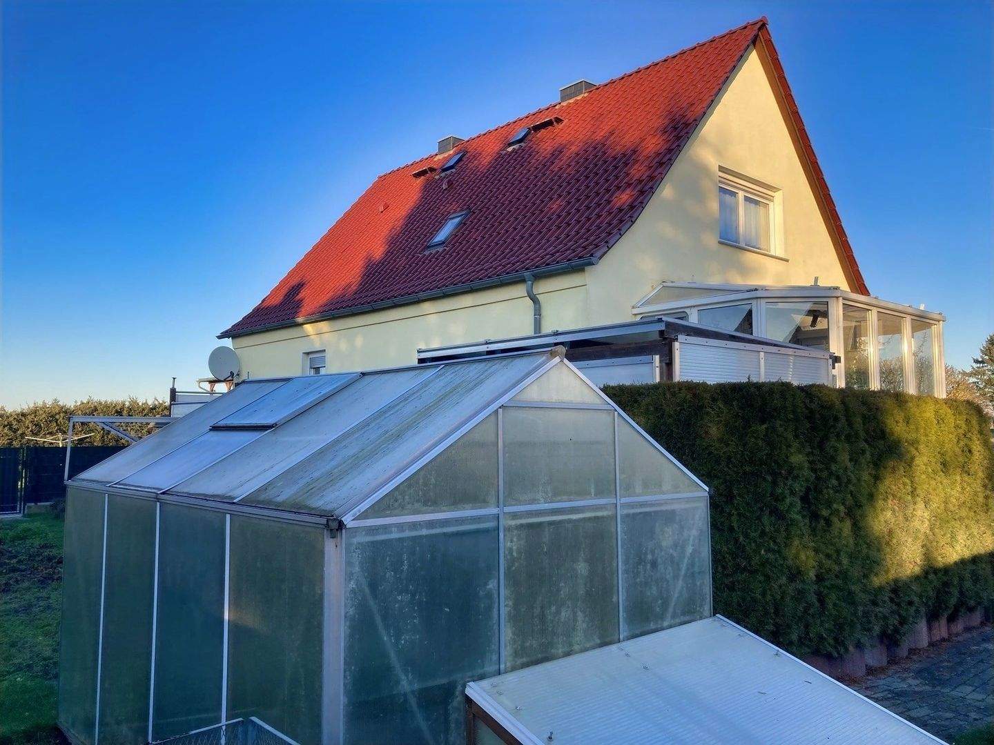 • Hausansicht - Wohnen mit Komfort: Gepflegtes Haus mit Wärmepumpe, Kamin & Wintergarten !