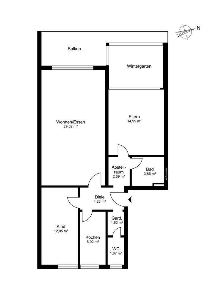 Wohnfläche:ca. 76,00 m²