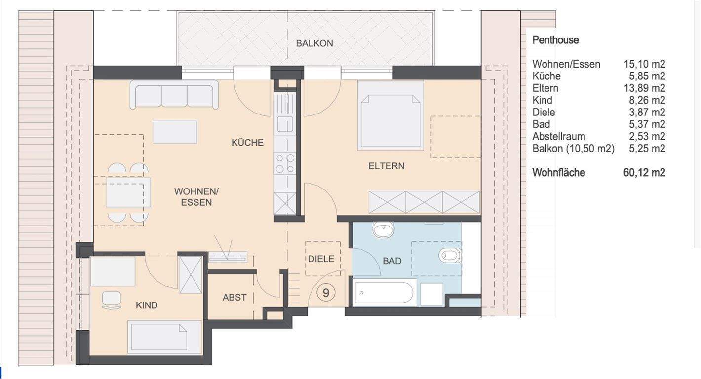 VERKAUFS-START: 3-Zimmer-Balkon-Wohnung ca. 60,10 m², Keller, TG-Platz a. W. WHG-Nr. 09