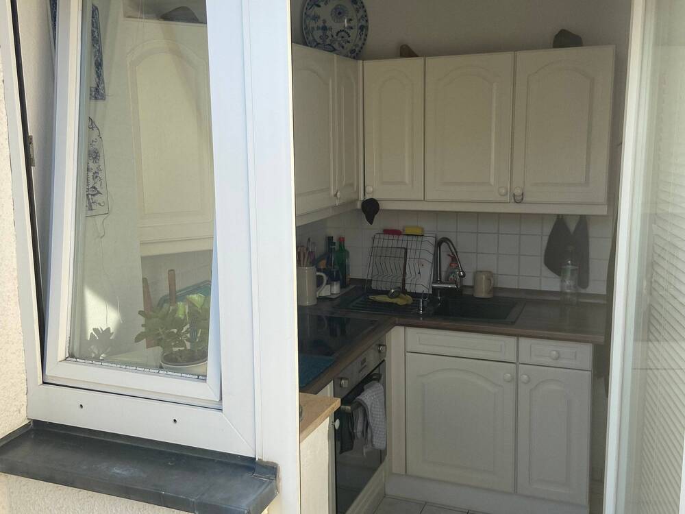 • Blick in Küche von Dachterrasse -