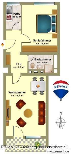 • Helles Wohnzimmer Sendling REMAX PSc-12210E0J0430 - 2 Zimmer Etagenwohnung in München
