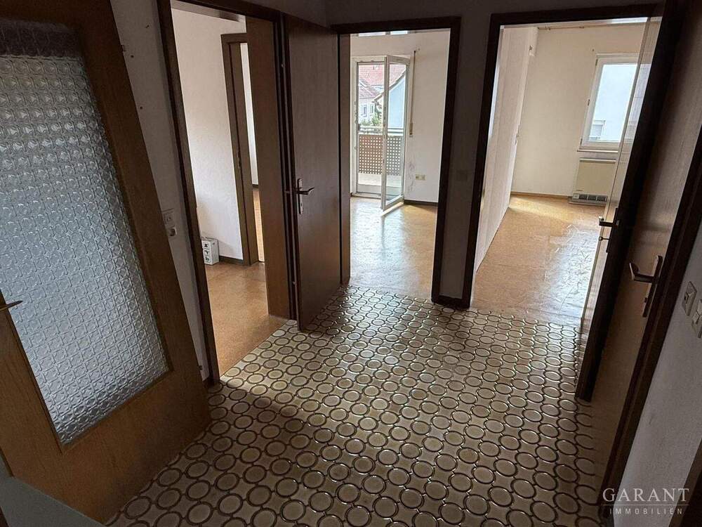 • Küche und Blick in Flur - 1 Zimmer Mehrfamilienhaus, Wohnhaus in Hessigheim