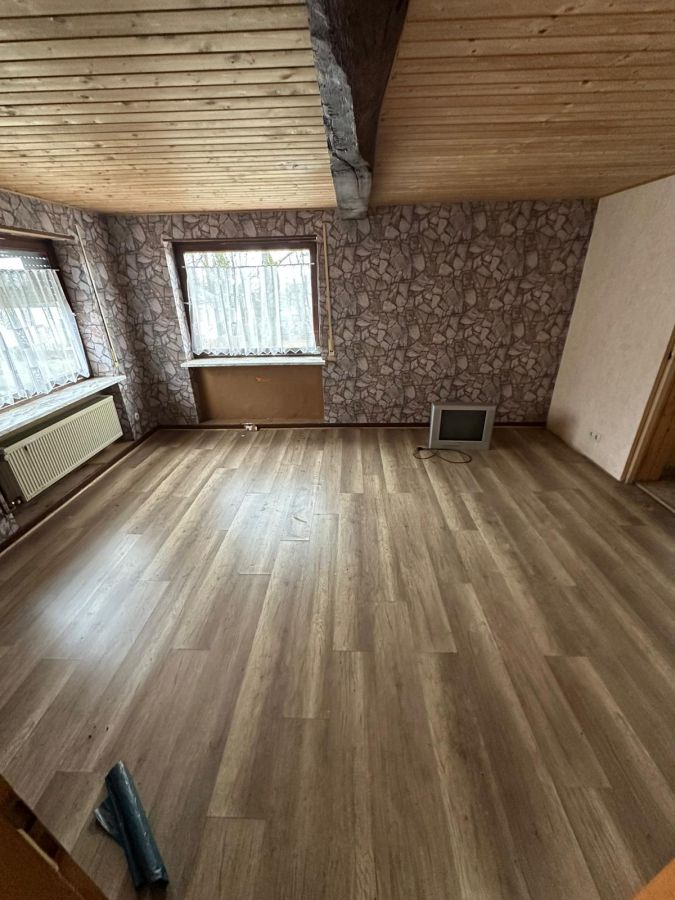 Das Haus befindet sich in einem sanierungsbedürftigen Zustand und muss umfassend renoviert werden. Aufgrund eines Wasserschadens sind entsprechende Instandsetzungsmaßnahmen erforderlich. Das Objekt eignet sich daher besonders für handwerklich versierte Käufer oder Familien, die sich mit überschaubaren Anschaffungskosten nach und nach den Traum vom eigenen Haus verwirklichen möchten.